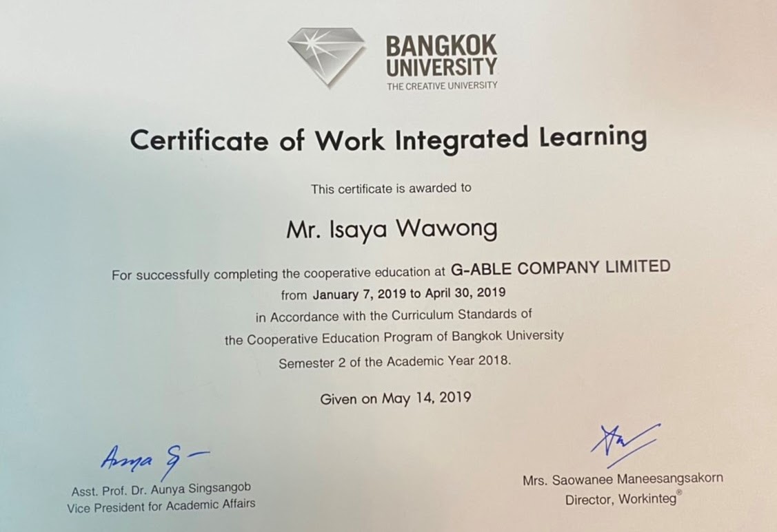 • Be an internship by working for a total of 4 months Starting January 01, 2019, until April 30, 2019, working as a web page employee along with a team that makes mobile applications to send information, collect insurance or collect documents received. By doing part of the web page as an intermediary to control job openings Calling or ordering to mobile applications again by developing through PHP language.