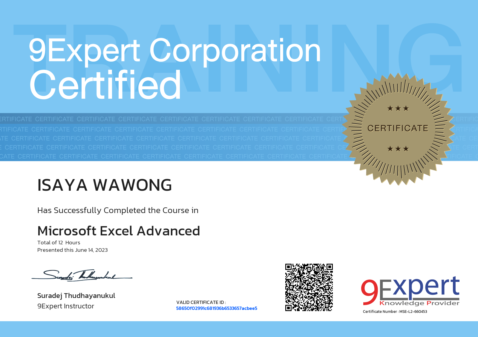 All certificates obtained from the internship Practical work and seminars to learn from different places